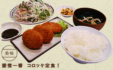 当店のロングセラーのコロッケ定食。女性に大人気!オススメの定食です! |