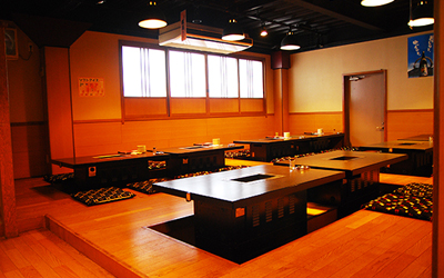 牧野店の自慢は、大人数でも座れるお座敷と、元気なスタッフ。 おいしいお肉をみなさんでお楽しみいただけます。